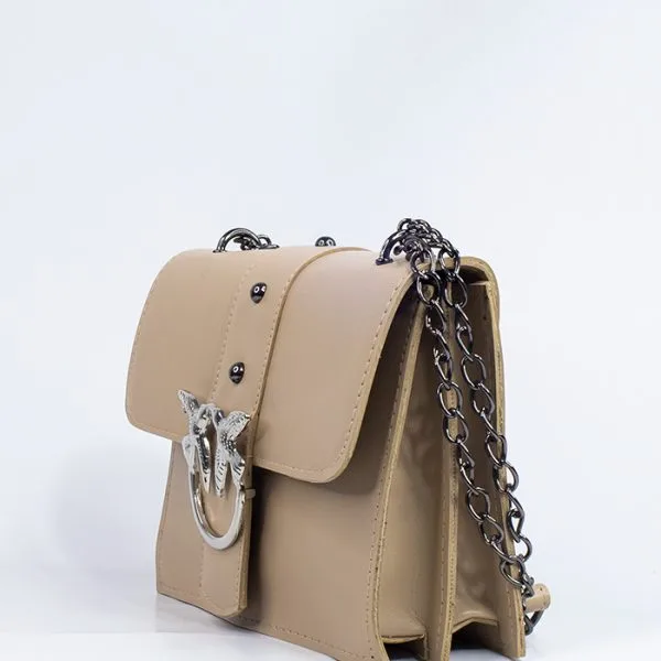 Sac à main cuir texture crocodile beige